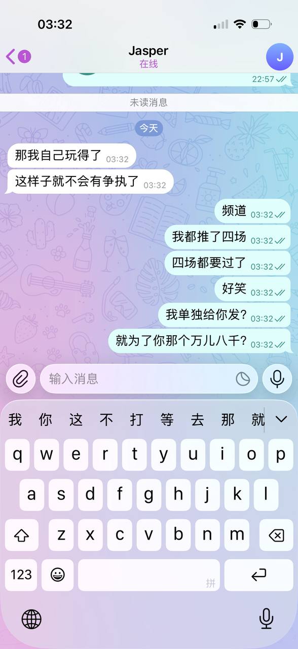 很多兄弟,不要急,资金少没关系,慢慢来人品一定要好,賺钱的机会很多,真的马上过年了答应我能不赌就不要赌了,自己裸杀包死的,就连协议有时候都要输,不要说自己裸,一百场球很少真踢,都是假球,只是演技多好而已,尤其nba卡盘卡到什么程度? 在频道我说过很多次这些话,听进去的希望多点,能拦下一个就拦下一个,我们项目很多,新来的多看看频道历史,我脾气也没那么差,想找我随时找,心情很不好我不忙都可以给你当当心理辅导师,那些输很难的兄弟,既然赌了就愿赌服输,没什么大不了,回到第一句话只要人品好,賺钱机会总是很多,维系好自己做人的原则,别赌的一无是处,别深陷。 实话实说 见过太多赌狗 赌特么比吸毒厉害多了 好人可以赌成坏人 别做让自己看不起自己的人,选择了输了就愿赌服输,及时止损不晚,啥时候想找我了随时,自己规划好资金慢慢理财,体育就是个长期理财项目,地球不倒 体育不息。