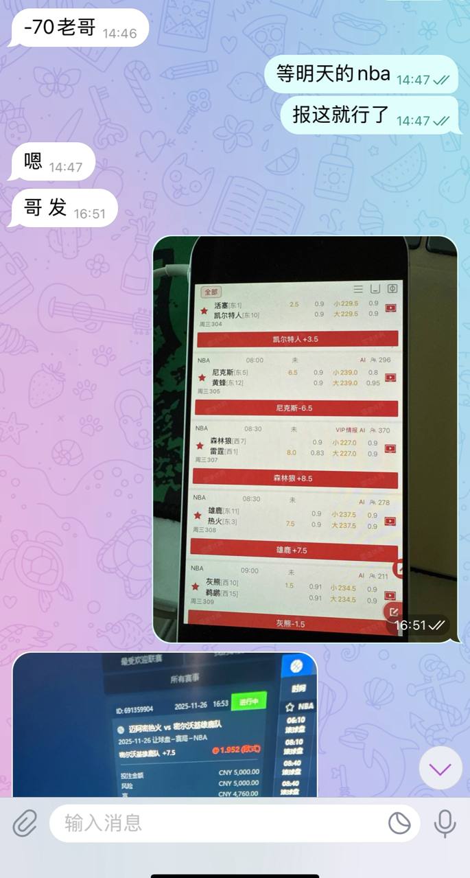 算了 足球不出了 怕不稳 赛事太大,就打NBA吧 现在找我拿 NBA发给你们打了早盘早点休息