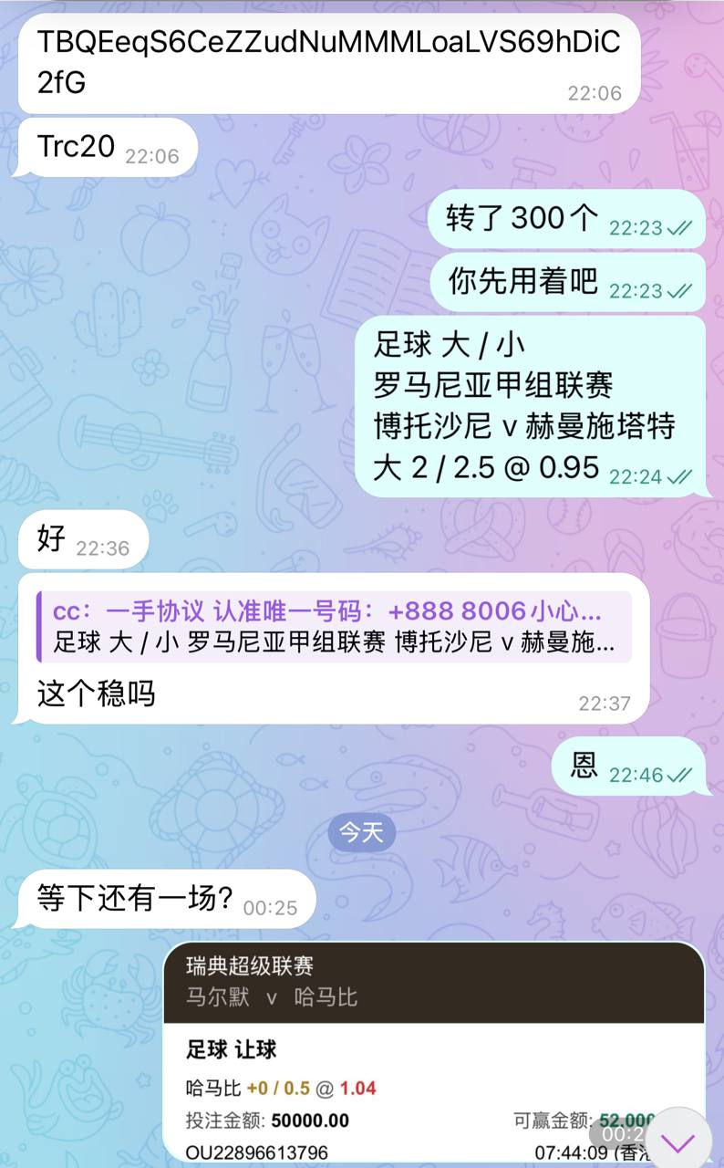 一:进行合作的客户须知,我们是坚决不与中介合作,里面充满太多变数,我们来到电报就是为了直面客户,不愿意被中间恶意曲解,所以如果有中介您不需要咨询我,我们工作室是支持上压的,但对资源有所划分,如果你是普通皇冠平网或者是普通现金网,我们是不走担保的,即使走,我们的要求你未必能接受,因为这种资源是最容易拿到的,它并不属于优势资源,在这类资源上我们并不缺,交到我们手上的此类资源没有几千万额度最少也达到一千万,我们会定期定点进行投注,让客户有所盈利为我们提供更优势资源,所以大家询问我们的时候,如果你是此类资源,我们是不支持上压的,没有必要去压一道资金,此类资源的话,进行划单或者平台不出款,我们是可以不追究客户赔偿的,合作是需要交号给我们这边的,交号只是为了比赛的私密性,即使你交了之后你也可以看后台,但我们也会有一定反制措施,信任是双向成立的,大家不必担心交号的安全性,如果是现金网平台,我们是不可能能把钱提取走的,因为需要验证码或者二级密码,如果是信用盘就更拿不走了,这类合作我们知道也会碰到个别客户换小号持续薅羊毛,我奉劝不要有这样的行为,我允许你逃单,但请不要换个用户接着来,那样子的话后果自负。